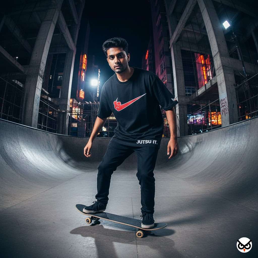 Summon your inner shinobi. The Jutsu It tee blends the iconic Akatsuki cloud with the swoosh spirit — streetwear meets jutsu. For anime buffs who believe style is their ultimate technique.