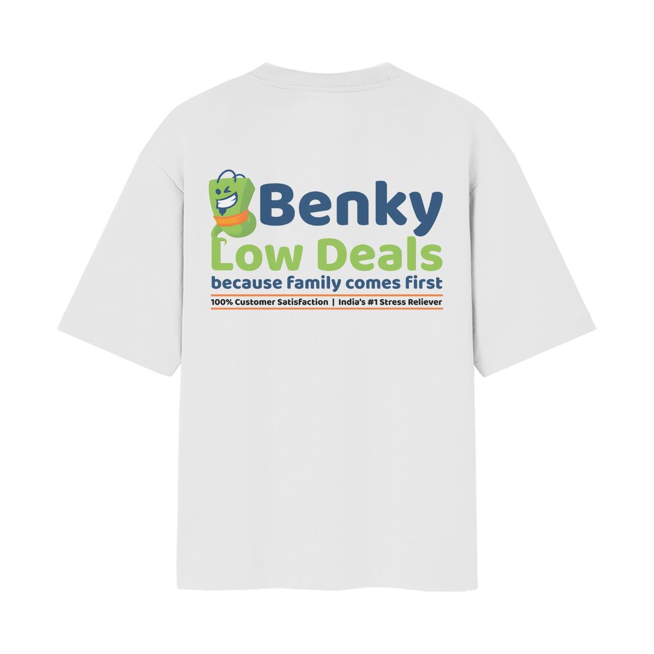 At first glance, you’re just a dedicated employee of the world’s most wholesome-sounding discount chain. The Benky Low Deals oversized tee features a crisp, professional-looking logo that screams “Employee of the Month” and “Family First.” It’s clean, it’s white, and it’s perfectly undercover for that family dinner or a quick run to the grocery store. It’s the ultimate Trojan Horse of streetwear, blending seamlessly into polite society while keeping the real joke tucked away for those who can read between the lines.