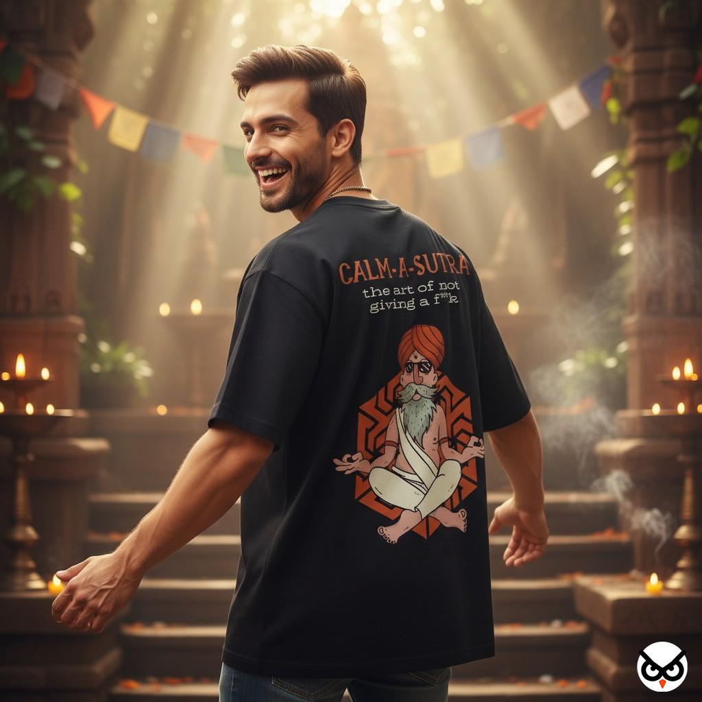 When chaos surrounds you, channel the art of not giving a f**k. Our Calm-a-Sutra sage is the chill guru you didn’t know you needed. He’s unbothered, unapologetic, and unfazed. Just like you in this tee.