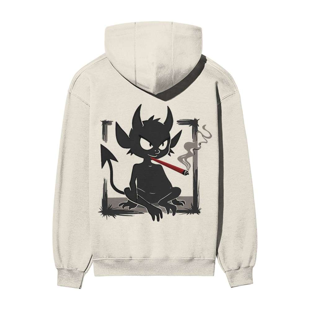 Crafted in a creamy beige, this hooded sweatshirt blends comfort with controversy. Whether you’re owning your vices or blaming the demon within, this piece is your ultimate street statement. Wear it loud. Blame it on the hoodie.