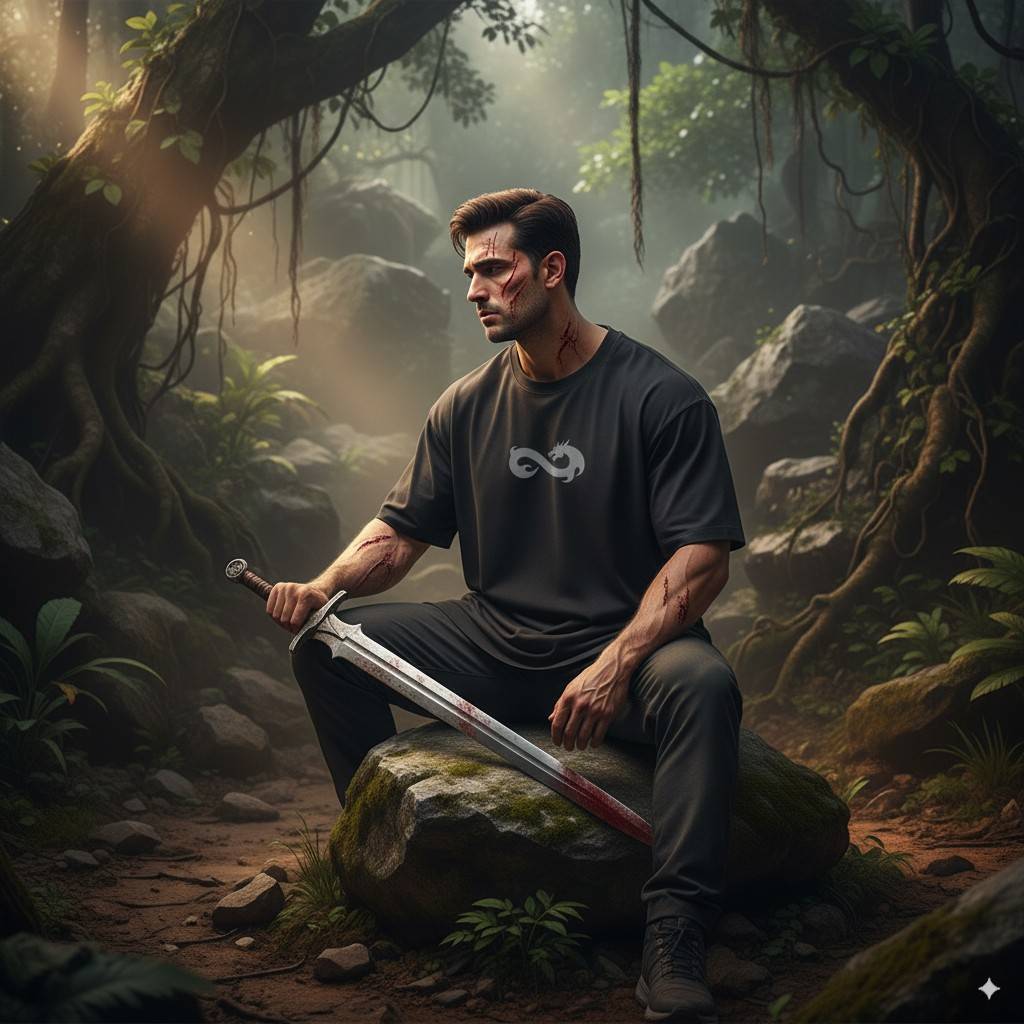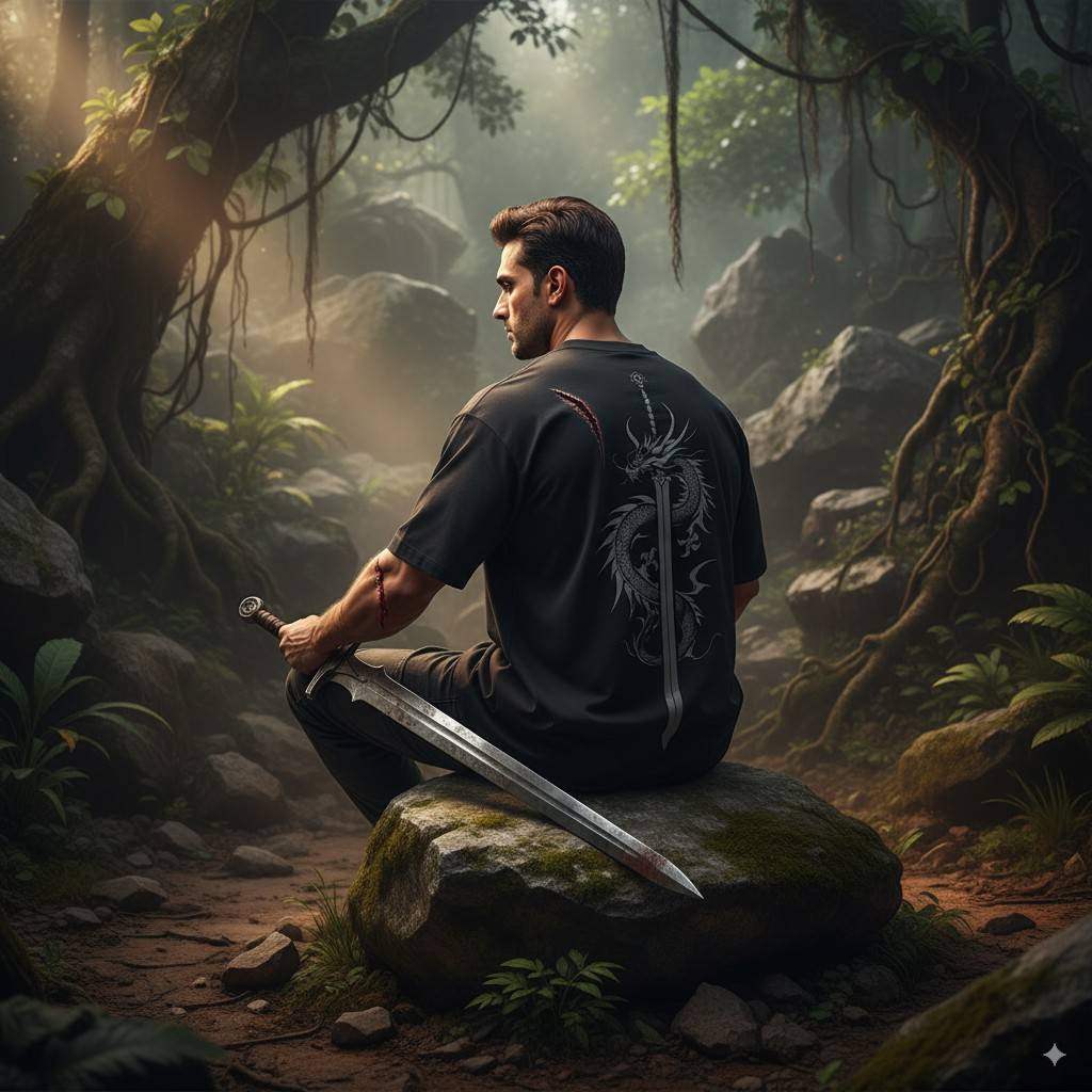 The Dragon Sword T-shirt by OoltaSeedha brings an ancient warrior aesthetic to the modern streetwear scene. The front print features an elegant infinity-shaped dragon, symbolizing eternal strength and power. The back? A stunning dragon coiled around a blade, etched with mythic precision. The artwork is clean, minimal, and sharp — a blend of fantasy and rebellion that defines the spirit of unapologetic streetwear.