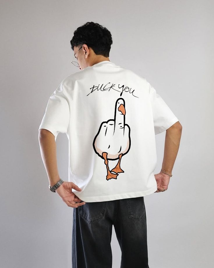 Subtlety is overrated. This oversized black tee from OoltaSeedha throws shade the stylish way — featuring a cleverly shaped middle finger duck graphic on the back with the unapologetic phrase: “Duck You.” It’s bold, playful, and just the right amount of offensive (with a wink).