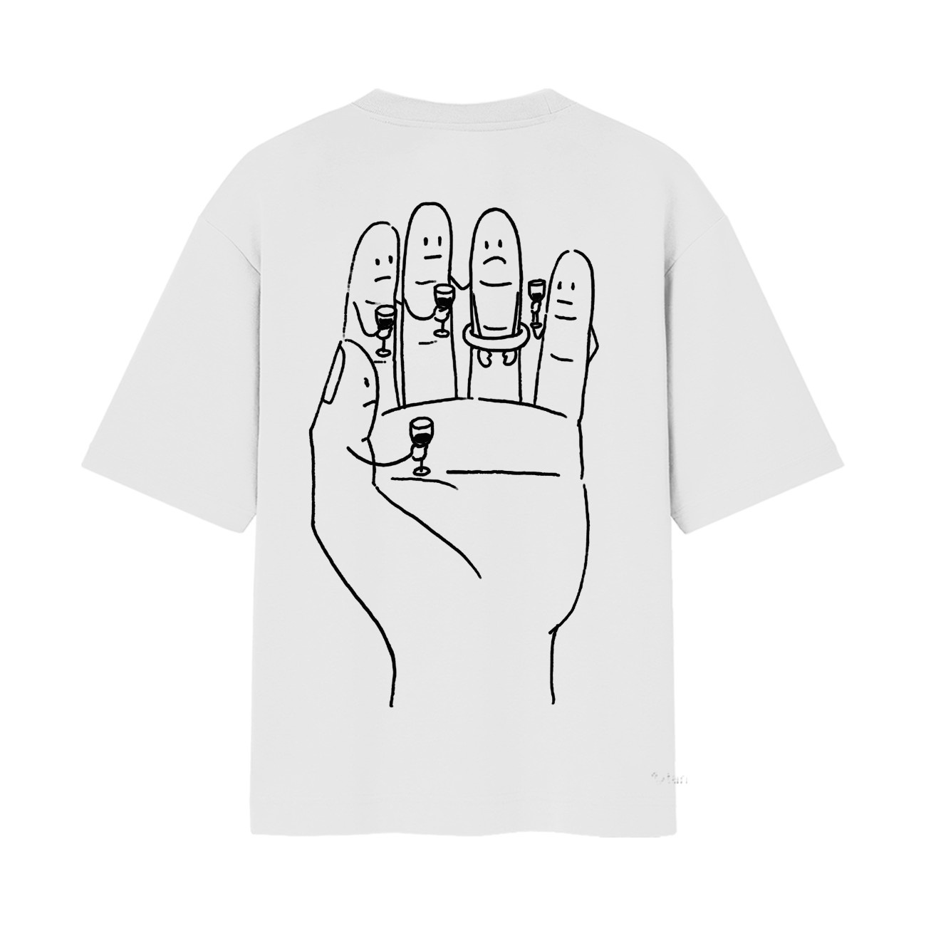 Add some quirky sarcasm to your streetwear drip with the “Married Finger” oversized tee from OoltaSeedha. The front keeps it clean with the OoltaSeedha signature logo, while the back illustration speaks volumes — a hilarious line-art sketch of fingers as people, chilling with drinks, except the engaged finger held hostage by a wedding ring. It’s satire, it’s storytelling, it’s your personality on cotton.