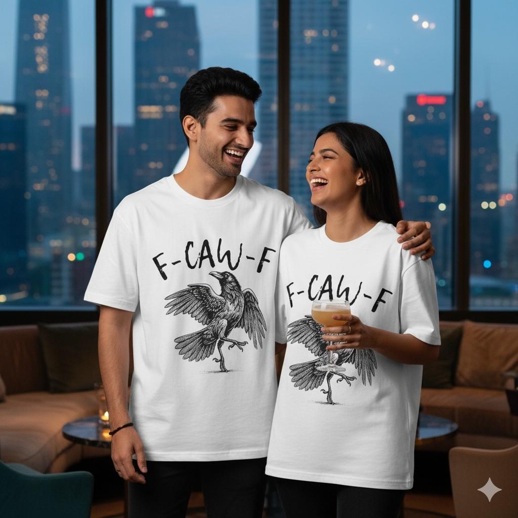 Introducing the “F-CAW-F” oversized tee from OoltaSeedha — where sarcastic birds speak louder than words. Featuring a badass hand-drawn raven mid-caw, the tee plays with sound and sass by spelling out F-CAW-F — a clever, cheeky twist on everyone’s favorite four-letter mood.