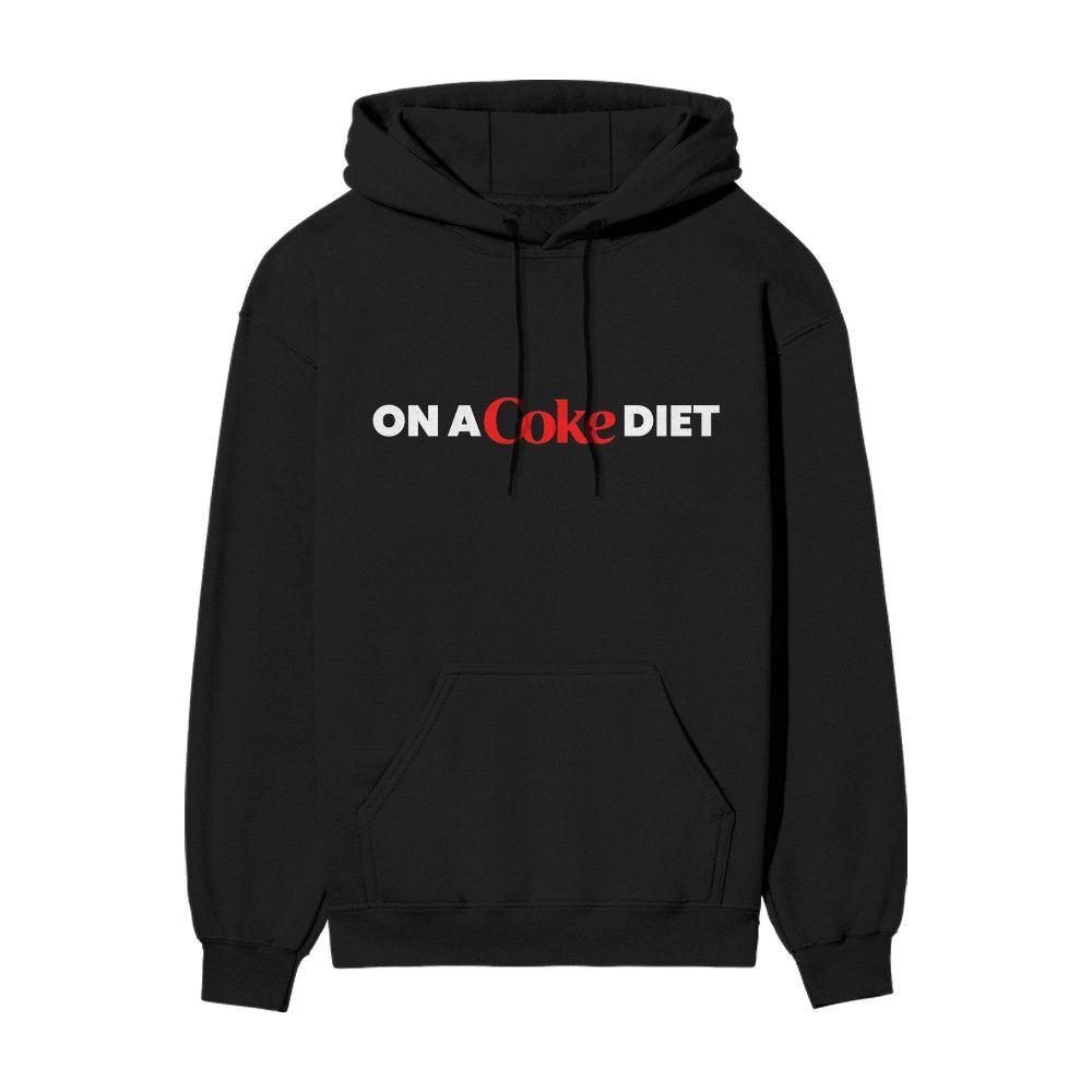 If sarcasm had a flavor, it’d be Diet Coke. This black hoodie is your daily dose of cold, carbonated rebellion. The front reads “ON A Coke DIET” in a clever parody of everyone’s favorite zero-calorie obsession, while the back screams unapologetic worship with a frosty can and the words “INJECT IN MY VEINS.” It’s not a lifestyle. It’s a religion.
