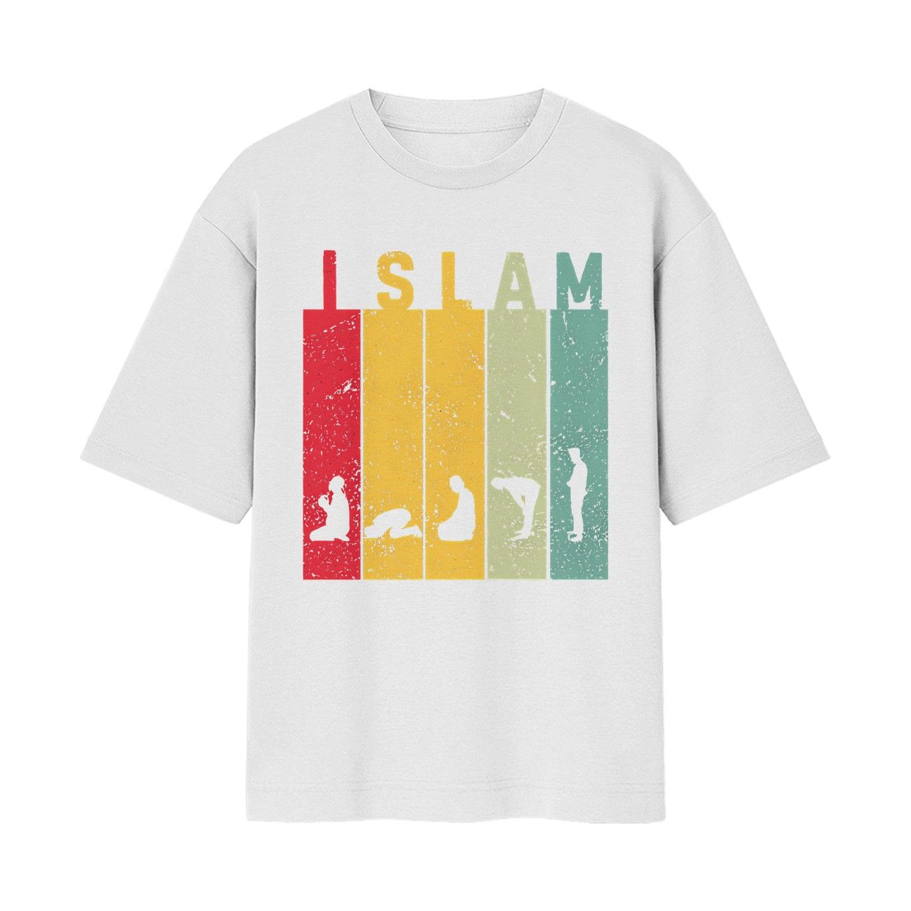 An ode to the five daily prayers, this oversized white t-shirt from Oolta Seedha blends minimalism with spiritual significance. The design features the five key positions of Islamic prayer arranged in a vertical palette, with the word “ISLAM” anchoring its essence. Soft, oversized, and made for expression, it’s your wearable reminder of submission, faith, and identity.