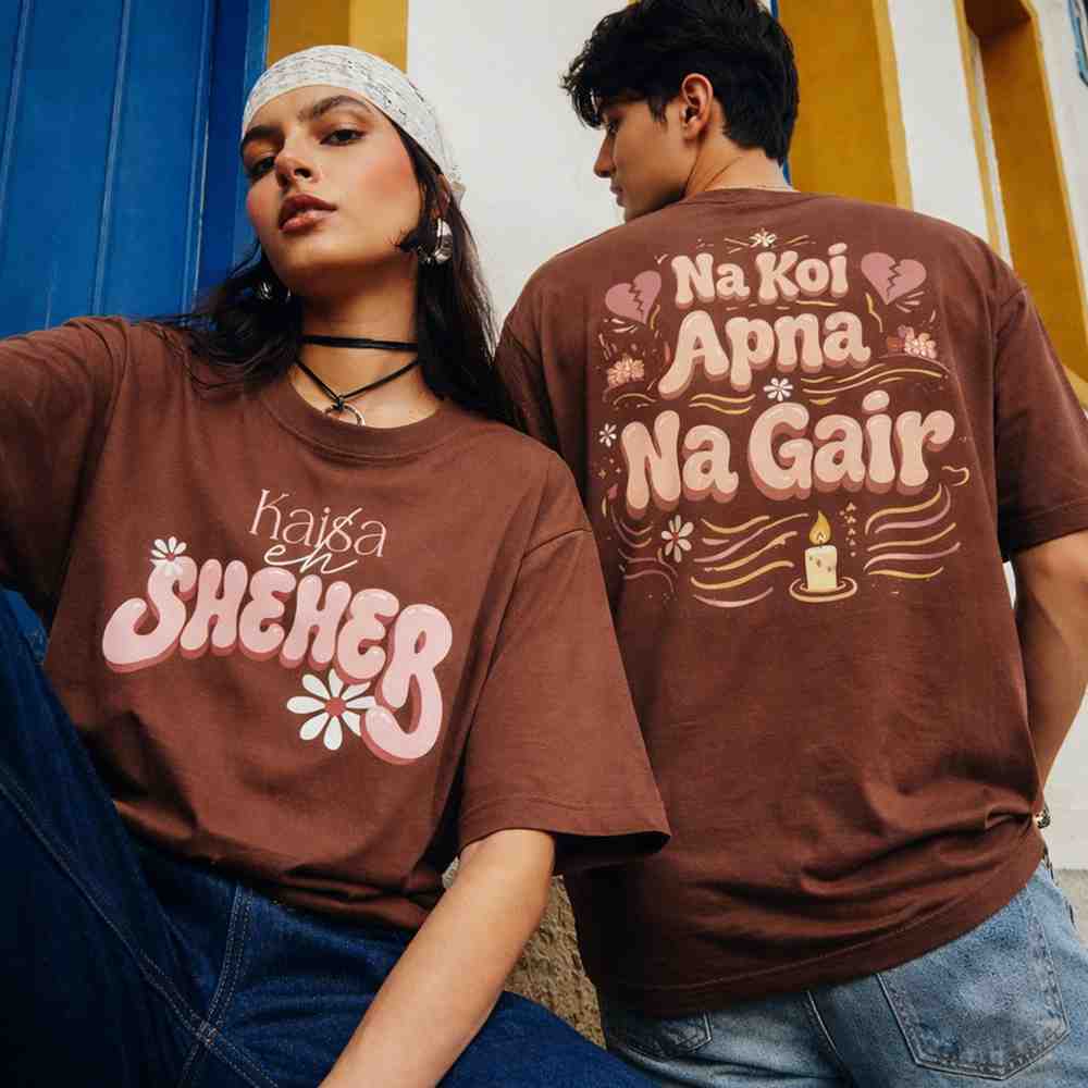 This isn’t just a line — it’s a feeling every city-bred soul carries. “Kaisa Eh Sheher” hits like a late-night thought, while “Na Koi Apna Na Gair” lands like truth you didn’t want to accept. Inspired by the raw energy of underground sound and street poetry, this design blends softness in visuals with heaviness in meaning. Pastel tones, broken hearts, and city silhouettes — all wrapped in quiet chaos.