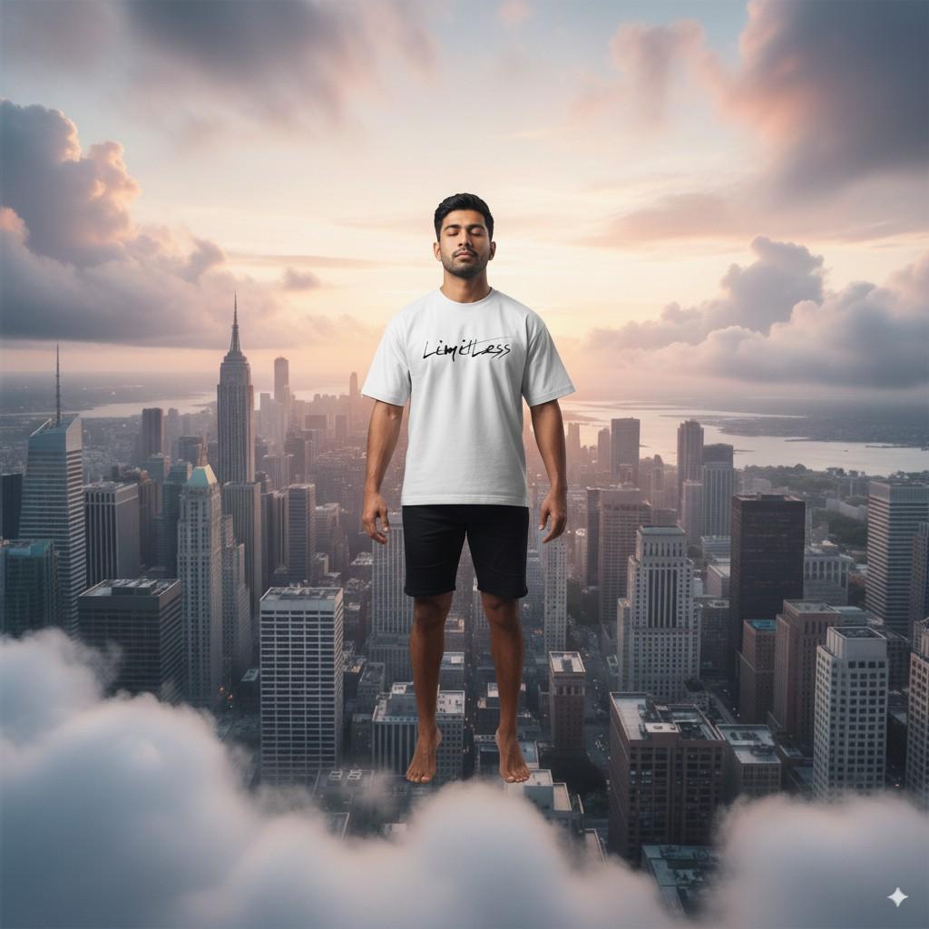 Introducing our “Limitless” oversized streetwear tee that blends minimalism with meaning. The front boldly features the handwritten “Limitless” wordmark — a reminder that your potential knows no bounds. Flip to the back and discover a sleek, minimal sketch of a dragon soaring towards a distant star — a symbol of strength, ambition, and relentless pursuit.
