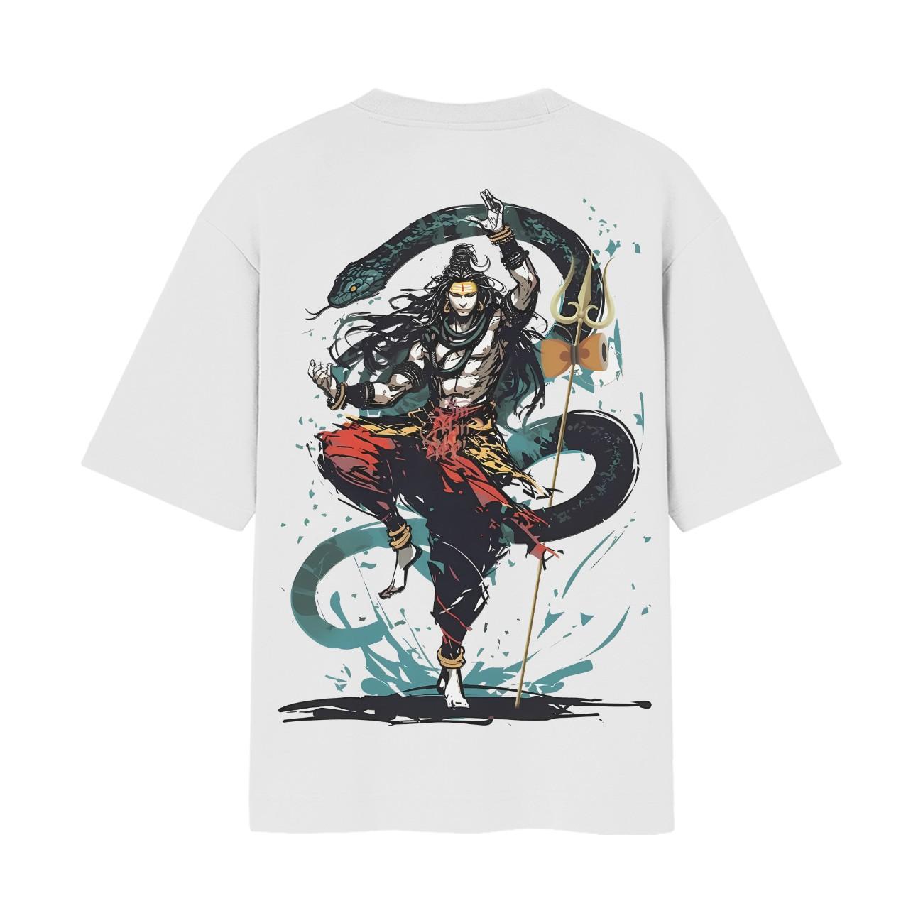 Tap into divine destruction and cosmic energy with the Tandav Shiva oversized t-shirt from OoltaSeedha. The front is minimal but powerful, featuring Shivji’s iconic tilak — representing the third eye of truth, fire, and inner awakening. Flip it to witness a dynamic illustration of Lord Shiva performing the fierce Tandav, draped in a serpent and wielding the Trishul. This design fuses raw mythology with bold modern art.
