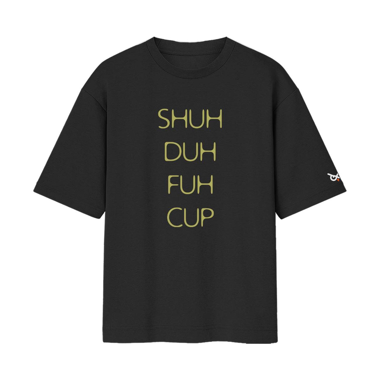 Some things are better understood when spoken rather than just seen. This design is a clever play on phonetics and visual perception, featuring a vertical stack of four seemingly innocent words: “SHUH DUH FUH CUP.” It’s an interactive piece of streetwear that invites curiosity and rewards it with a blunt, unmistakable message once read aloud. Set against a deep black canvas, the muted gold typography adds a touch of sophistication to a design that is, at its heart, a masterclass in modern sarcasm.